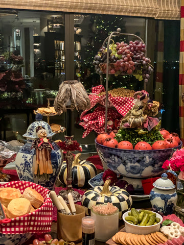 I must say, my favorite day is the one after a party when I get to sit back and contemplate all my pretties and my clean house. Beneath this table of Aunt Golda’s are my collection of Uncle Roger’s books that Lee set aside for me.